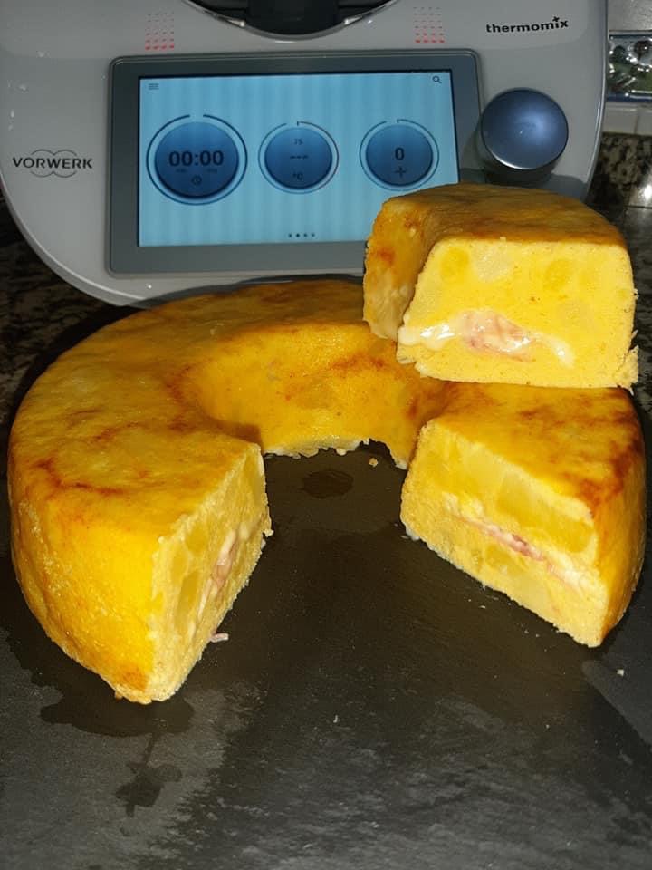 ¿ Has probado hacer tortilla de patata con pavo y queso en Thermomix ?
