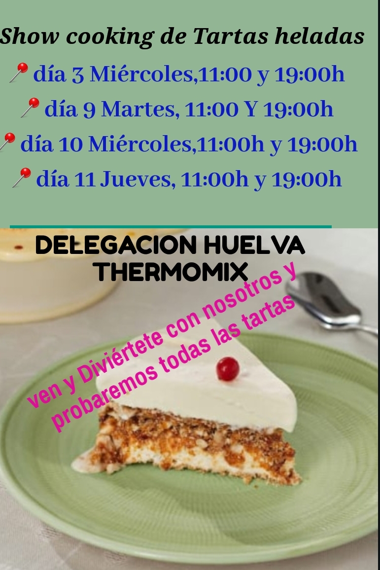 TE INVITO A QUE VENGAS A NUESTRA DELEGACIÓN A PASAR UN RATO DIVERTIDO, APRENDIENDO A REALIZAR UNAS ESPECTACULARES TARTAS HELADAS, EL POSTRE PERFECTO PARA ESTE VERANO...... ADEMÁS CONOCERÁS EL NUEVO THERMOMIX TM6.